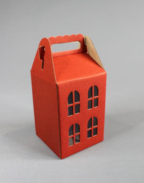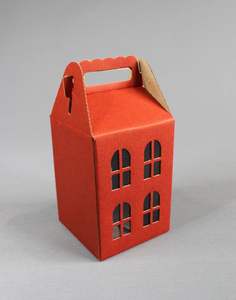 Материал: Кирпично-красный микрогофрокартон с крафт оборотом, окна с вклеенной пленкой.